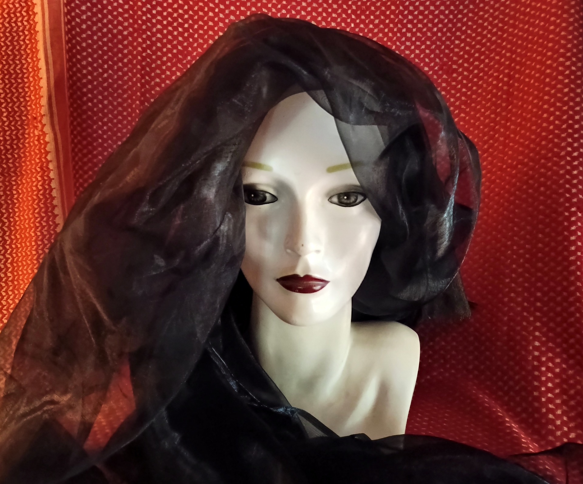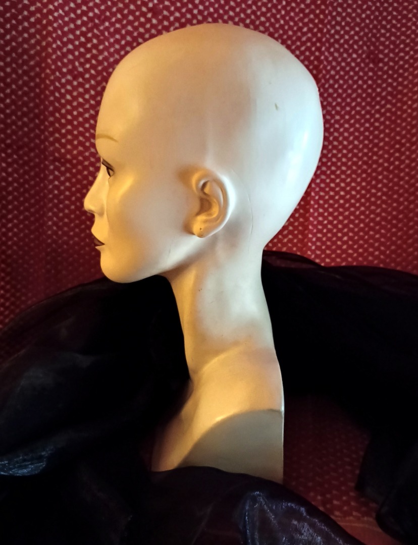 Bij ankoop van het mannequin hoofd is de zwarte stof zoals getoond in de foto's niet inbegrepen.