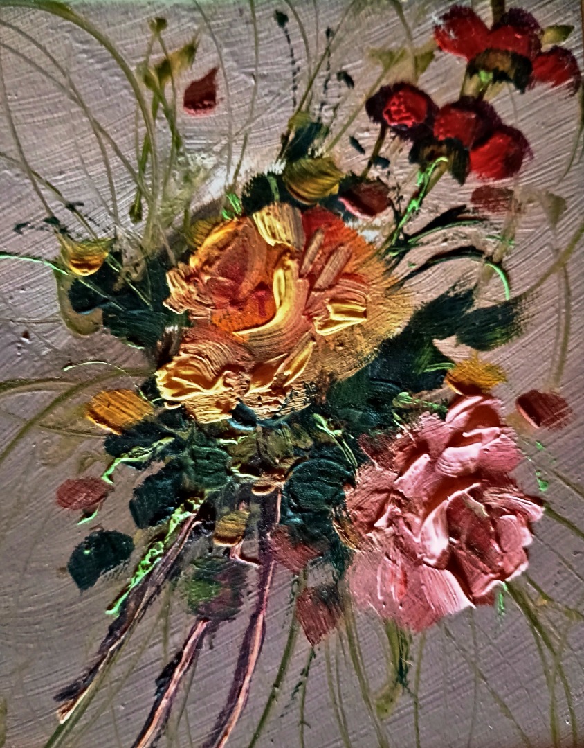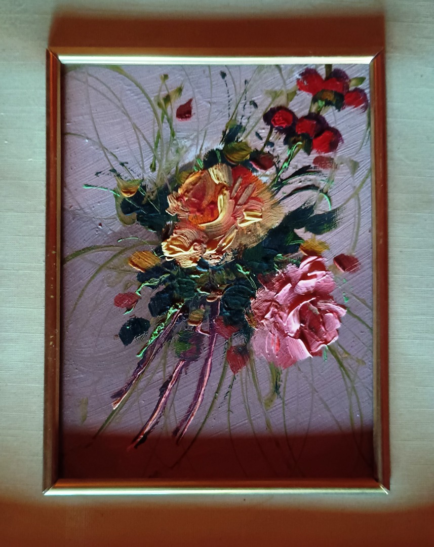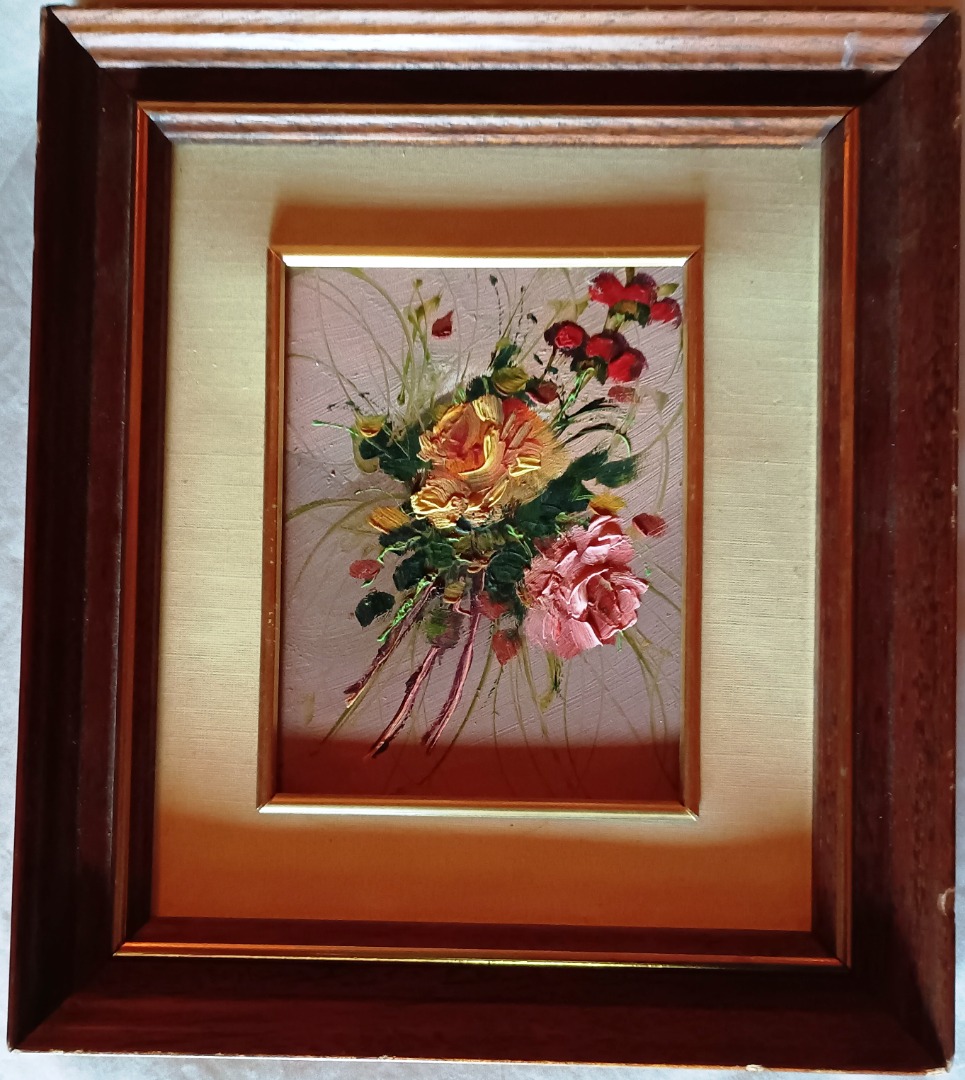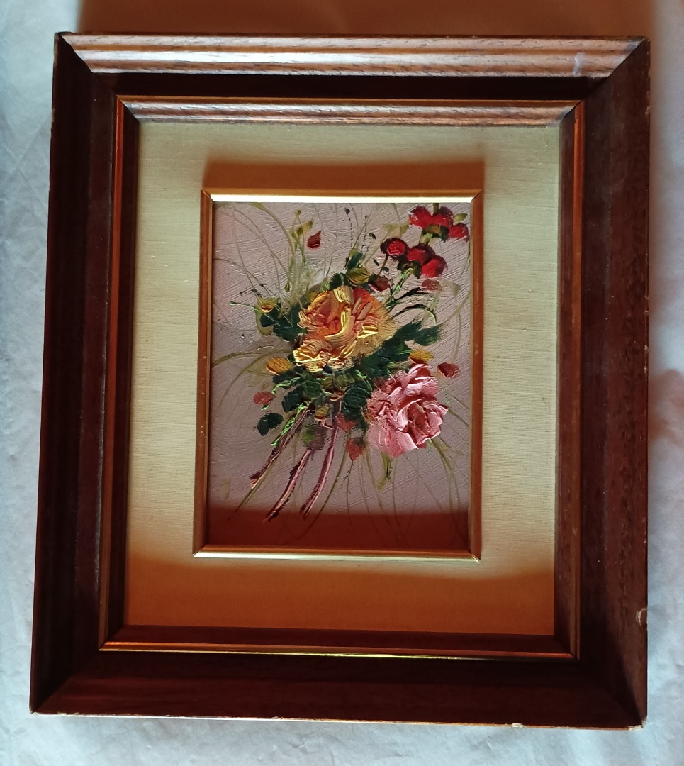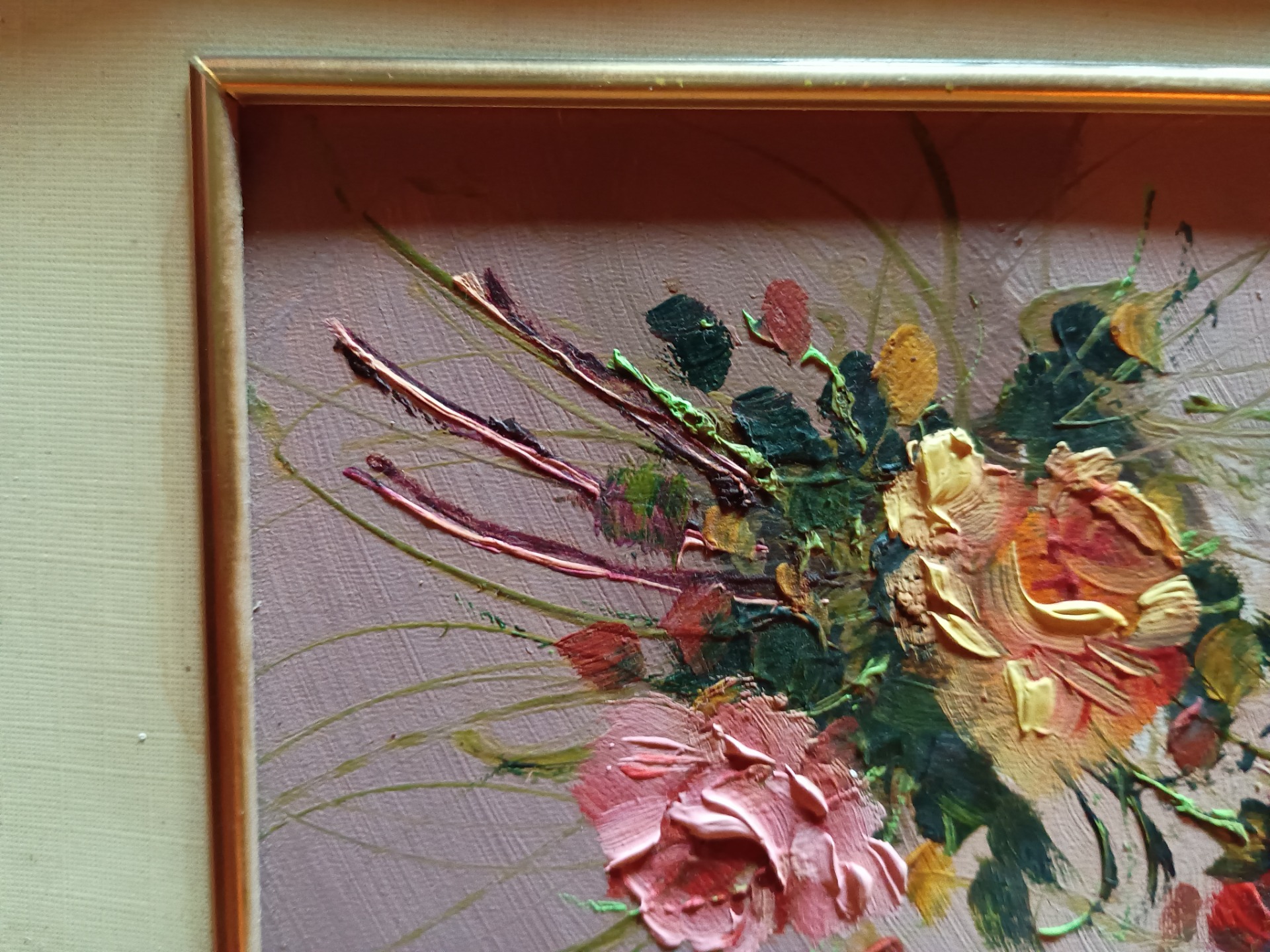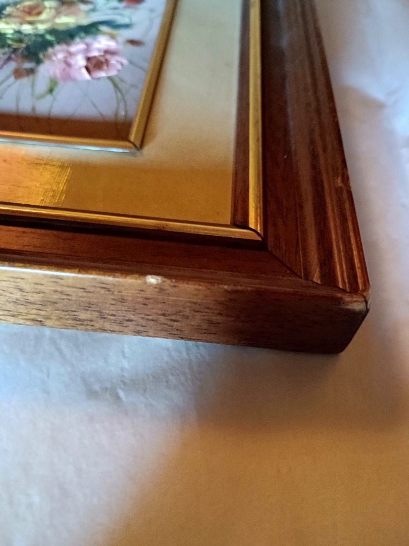 Vintage staat. Er zitten wat vage vlekken op het passepartout en wat beschadigingen op de omlijsting.